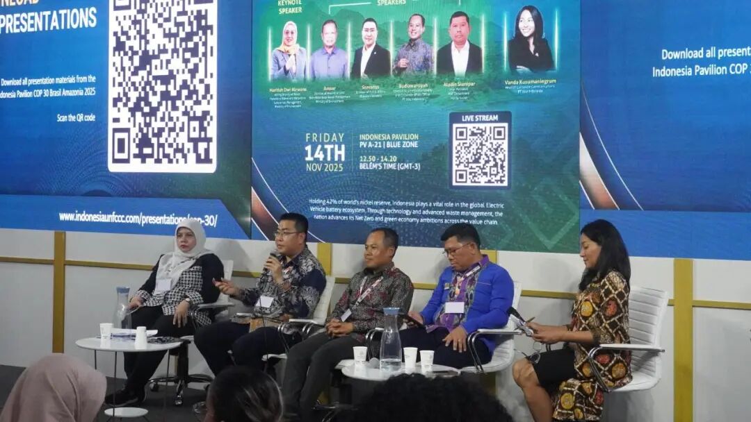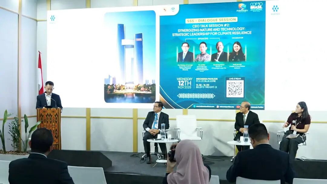 当地时间11月12日,COP30印尼馆举办了主题为“协同自然与科技:气候韧性战略领导力”的CEO气候对话(CEO Climate Talks)活动,华友印尼区域管理中心总经理韦林奎代表公司,与来自印尼PT Pupuk Indonesia和Astra Agro Lestari Tbk的嘉宾共同参与。