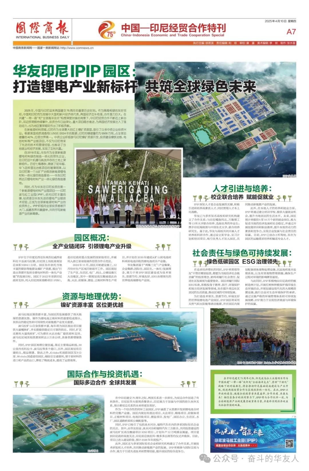 《国际商报》特刊——华友印尼IPIP园区: 打造全球锂电产业新标杆,共筑绿色未来