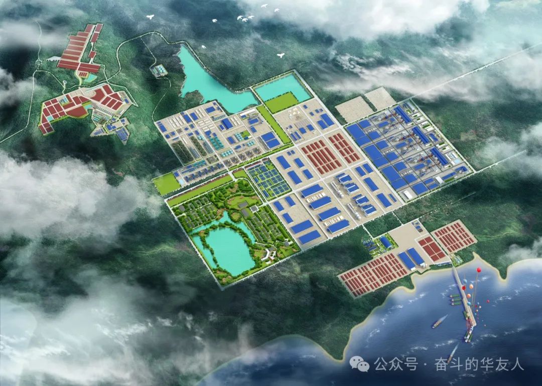 2024年11月,园区开始建设施工,12月份对生产区域开始场平工作。园区规划了生产区、生活区、电厂、码头、公辅设施五大功能区,其中一期规划高压酸浸湿法冶炼、火法、前驱体、锂盐、正极材料等生产项目,并计划在2030年,建成从矿山到电池材料再到电池回收的锂电池闭合产业链。